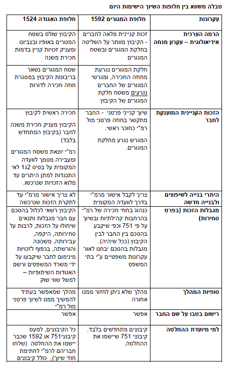 לשייך דירות (בקיבוץ המתחדש) לפי החלטה 751 (אם הועברה רשימה לוועדת הפרוגרמות), לפי החלטה 1592 –שיוך קנייני ישיר או לפי חלופת האגודה (1524) – שיוך קנייני באמצעות חכירת משנה .[2]