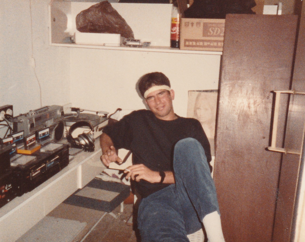 "בשלוש השנים האלו, כל מי שהתגייס או השתחרר מהקיבוץ, קיבל שירות טופ-קלאס בבקו"ם", הוא אומר – ואני יכול לאשר: ביום שחרורי היה בבקו"ם תור של חצי קילומטר, אבל אני חלפתי על פניו באלגנטיות, עם הקיטבג הריק שלי ויצאתי כאזרח מאושר אחרי ארבע דקות. "מעבר לכך, ידעו בבקו"ם שלפחות פעם בשבוע אני יוצא מוקדם לחליבת ערב", מדגיש ירון. במהלך השירות הצבאי הוא הפך גם לדי.ג'יי המיתולוגי של המועדון הסגול. "החלפתי את אופיר כפרי שהתגייס ונכנסתי לעניין". 190 הסנטימטרים שלו דחוסים בתוך כוך הדי.ג'יי של "הסגול", הם מהמראות הזכורים ביותר לכל מי שפקד את המקום בסוף האייטיז-תחילת הניינטיז.