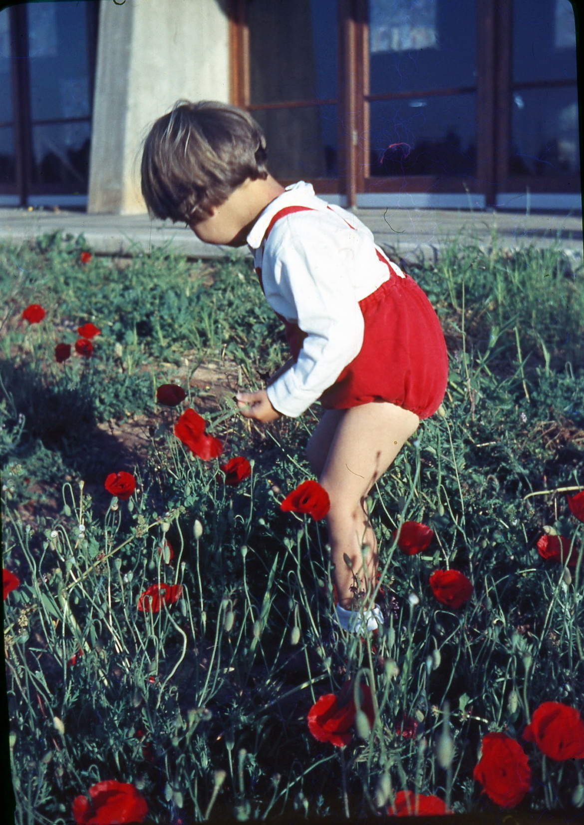 מאוסף אלי וורפל, שקופיות מהמשפחה שהועברו לאחרונה לארכיון ונסרקו על ידי אשר ישראל; אורית וורפל, שנות ה-60, פריחה באדום ליד בית וינה.