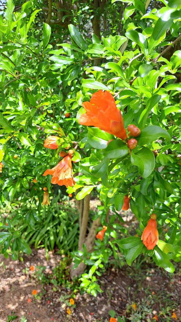 וכשמסתובבים בקיבוץ בימי האביב הפורחים הללו, אפשר לראות עצי רימון שהופכים אט אט לאדום ארגמן, למשל בקצה הדשא של אמא שלי.