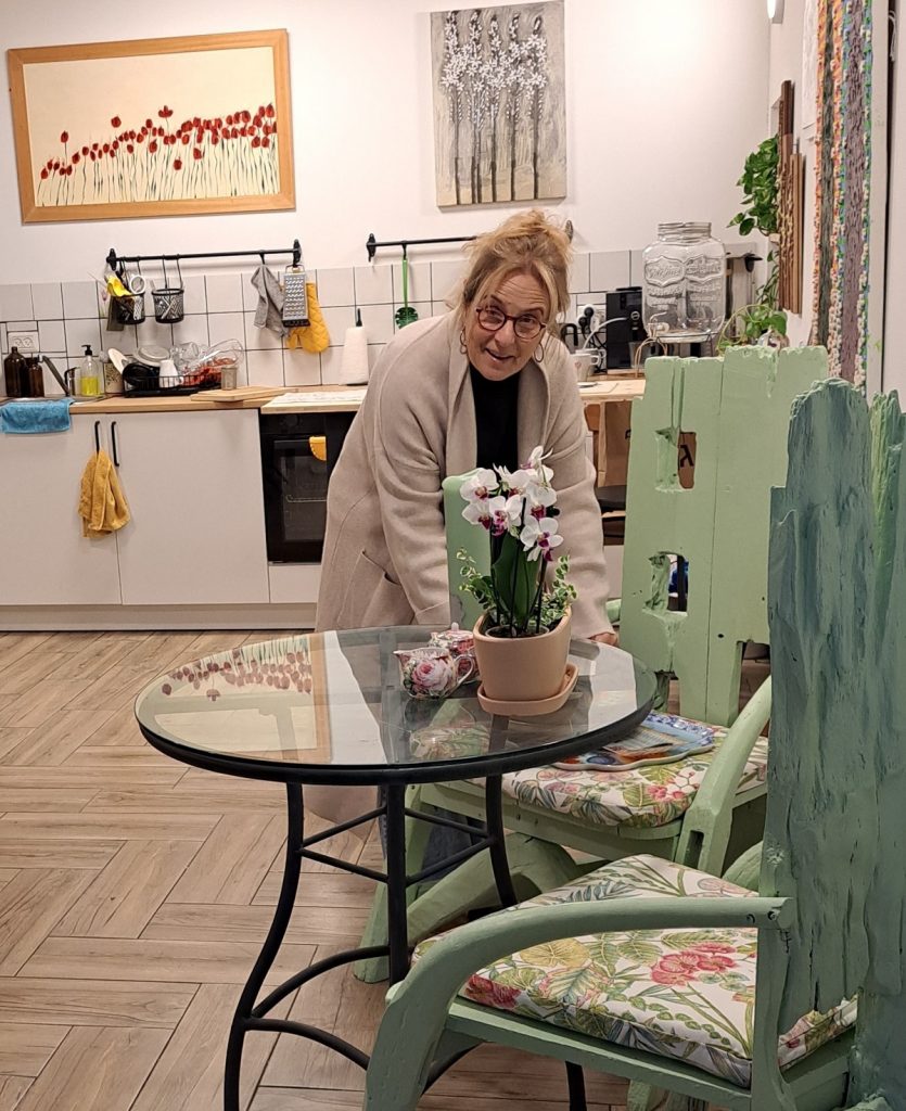 אז זה לא בית קפה, אבל היא דואגת שכל מי שמגיע לסדנאות שלה לא ייצא רעב ושילוב הסדנאות עם הארוחות, יוצר תחושת בית. "לא מזמן נכנס הנה מישהו בטעות ושאל אם זה בית", היא מספרת בחיוך.