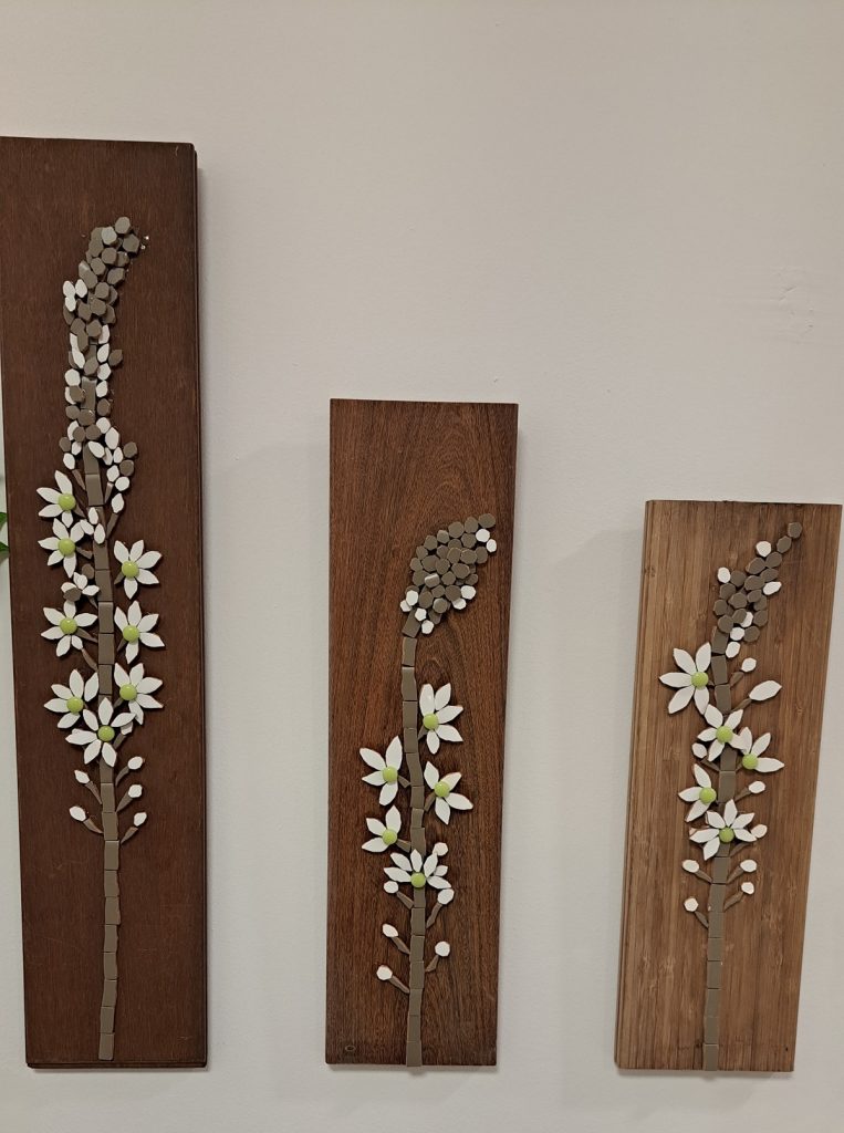 בחלל אותו עיצבה בעצמה, מתקיימות סדנאות חימר, חרוזים וקולאז' חזון אותן מעבירות שלוש מחברותיה הטובות. רקפת מעבירה סדנאות פסיפס של חצבים. "אני אוהבת את החצב. יש בו עדינות, כוח, עוצמה אצילות ויציבות".