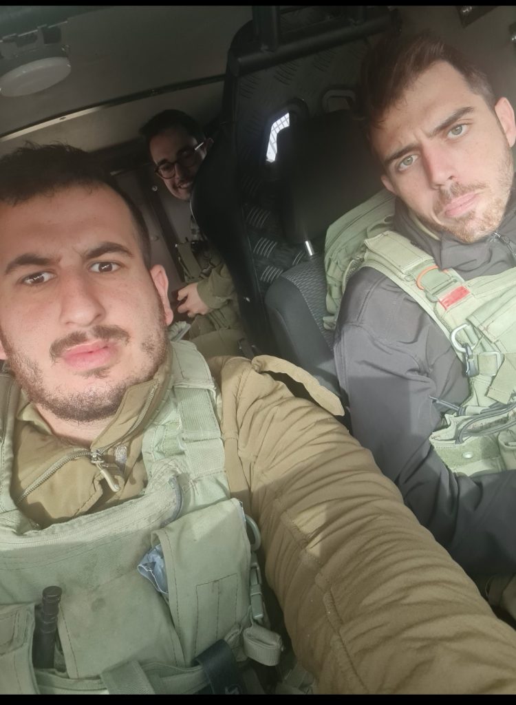 אבל מתברר שזו הייתה רק חזרה גנרלית. "בבוקר השבת של 7 באוקטובר, התעוררנו, אבישג בת הזוג שלי ואני, מוקדם מטלפון שהיא קיבלה מאמא שלה שאמרה 'יש מלחמה'. התארגנתי מהר, ארזתי תיק ובסביבות השעה 11 כבר הייתי בצאלים בכיוון יציאה למשימות בעוטף. לצערי או למזלי, תלוי מתי שואלים, פגעה רקטה של חמאס בבסיס ושרפה שלוש מכולות של ציוד לחימה, ציוד קשר ועוד מכולה של תרומות. נשרפו גם לא מעט כלי-רכב, מה שעיכב את ההתארגנות והיציאה. אחרי כמה משימות בעוטף עזה, נשלחתי למשימה שנמשכה כחודש בצפון, עם יחידת הלוט"ר (לוחמה בטרור) ויחד איתם, תפקדנו בתור צוות התערבות לאירוע בני ערובה או תקיפה מכיוון לבנון. לאחר מכן ירדתי חזרה לדרום ושם, גם בשיתוף יחידת הלוט"ר, עשינו כמה משימות חוצות גדר כמעט כל לילה והיינו אחראים, בין היתר, על בטחון ושמירה על יישובי העוטף. החוויה הייתה לא פשוטה, אבל התחושה שכל חבריי מהקיבוץ ואחי הגדול נלחמים גם הם, נתנה לי את הדחיפה הגדולה להמשיך כל הזמן".