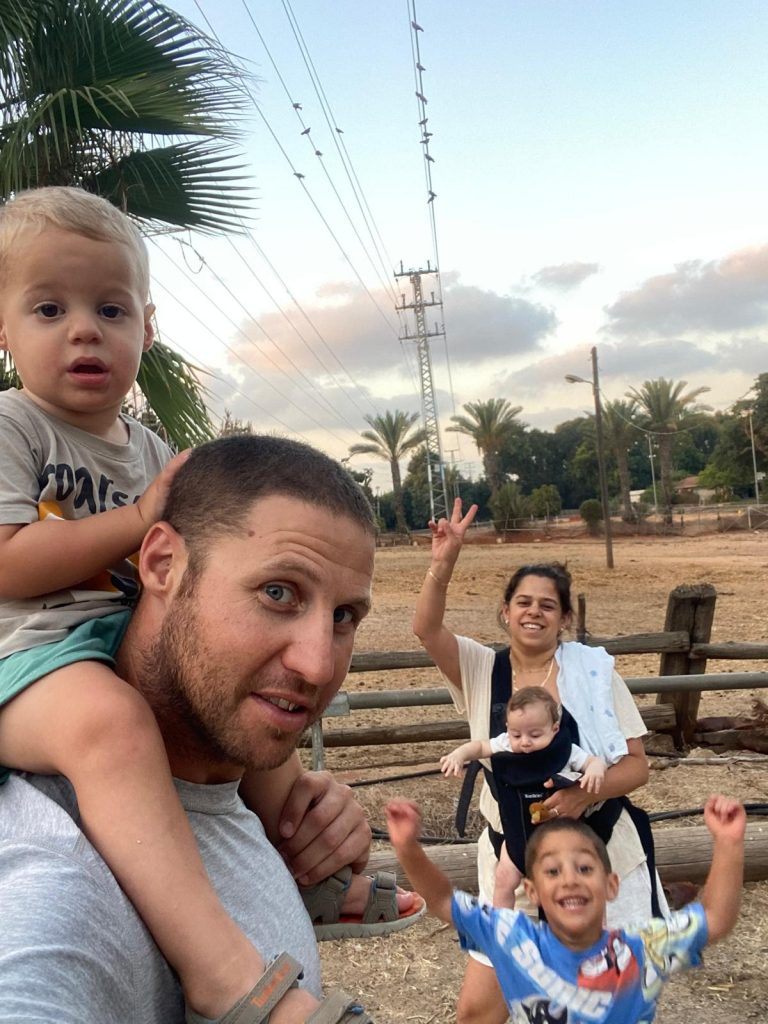 אי אפשר להתעלם מהעובדה שנדב שירת במילואים זמן רב בשנה האחרונה. "זה לא יכול לעבוד אם אין בבית אישה חזקה, תומכת, המבינה שאין ברירה וזה צו השעה. אנחנו כבר בשנה השנייה למלחמה ומאז תחילתה שירתתי מעל 300 ימי מילואים. בלשון המעטה, התמודדות המשפחה אינה קלה וזה הופך מורכב יותר עם כל תקופת מילואים נוספת ואנו נעזרים המון במשפחה, הסבים והסבתות, הדודים וחברים בקיבוץ. במהלך המלחמה ורגע לפני תחילת תעסוקה מבצעית ברמת הגולן, נולד בננו אביב והפכנו להורים לשלושה, מה שהפך את העניין למורכב אף יותר אך לגמרי אפשרי בזכות אשתי והתמיכה מסביב. הגדוד לקראת פרק מילואים נוסף והכוח של העורף זה הכוח שלנו להמשיך ולהילחם בחזית".