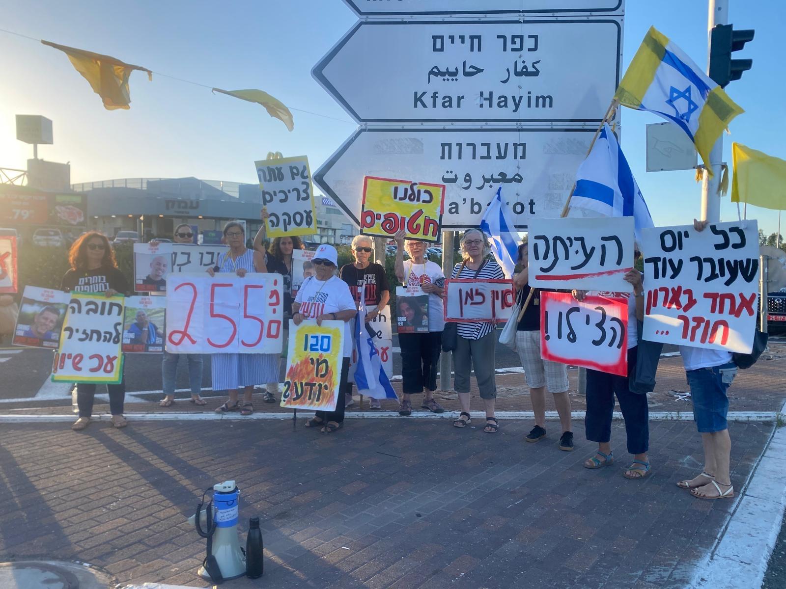 "הקשר עם מטה החטופים הוא של סיוע הדדי והם מפנים אלינו את הדוברים, הציוד, הדגלים והשלטים. עשינו גיוס להכנת שלטים משלנו לטובת המאבק. יש חיבור בין מטה המאבק להפלת הממשלה ומטה החטופים באיזור ואנחנו מארגנות אירוע עם אחת ממשפחות החטופים. נפרסם כשנסגור את הפרטים".