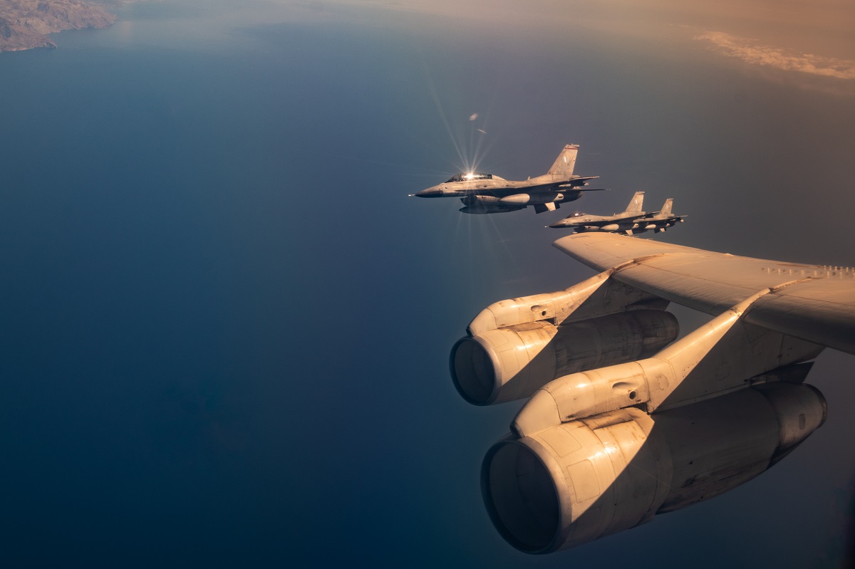 פתאום – ים, הרבה ים חולף על פנינו כשאנו עושים את דרכנו מערבה לאיים המרשימים של יוון, בינתיים אני מקבל מושב בתוך הקוקפיט ואף זוכה לשמוע את קולות הקשר. למרות שאני לא מבין דבר, אני קולט מן הנאמר את רמת המקצועיות הגבוהה של צוות האוויר: הכל נעשה ברצינות, כל פעולה וכל משימה קטנה נלקחים בחשבון בעת הטיסה והכל מדובר בין כולם, התקשורת בין אנשי הצוות יעילה מאוד והם מבינים אחד את השני מהר מאוד, כשכולם עובדים יחד למען הצלחת המשימה. בטיסה ארוכה כזו, הנמשכת שעות רבות ומטרתה היא תרגול תדלוק מטוסי קרב בדרכם ליעדים מרוחקים, גדל מספר אנשי צוות האוויר ולא פעם גם מוכפל.