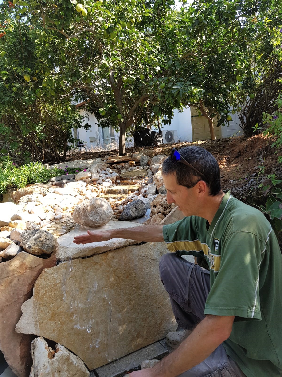בסגר השני החלטתי שאני הולך על עוד פרויקט בו הרהרתי זמן רב –מפל מים בחצר. חפרתי בעשרות ואפילו מאות סרטים ביוטיוב והחלטתי לבנות אותו בשיטת Pond less Waterfall עם מאגר מים תת-קרקעי המכוסה אבנים ובתוכו משאבה השואבת את המים לחלק העליון של הנחל. העבודה הייתה מרובה וכללה חפירות, סחיבות וחציבות, אבל אני מרוצה מאוד ממה שיצא. עדיין לא סיימתי ואני מתכנן לשתול צמחייה ולהתקין תאורה. מוזמנים לבקר".