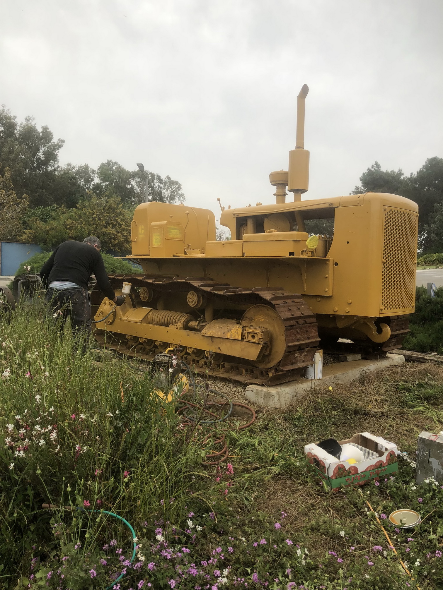 לכבוד נקיונות הפסח זכה ה- D5 לניקוי ושיפצור – טיפול נגד חלודה, צביעה בצבעי מקור של חברת קטרפילר ושיחזור הסמלים והכתוביות. מדובר בטרקטור אהוב שעשה את עבודתו נאמנה ולא לחינם זכה לכיכר. צילם: קובי אבן שושן