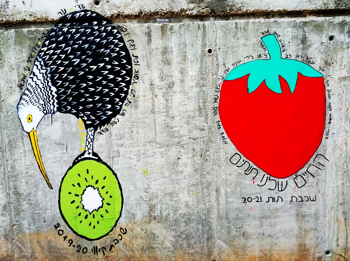 הציור: תות שדה ולצדו קיפוד חמוד. שאלות רבות עולות לי: מי הצייר/ת? האם הציור תמיד היה שם ופשוט לא שמנו לב? והבניין, למה הוא משמש? מדוע בחר, מי שבחר, לצייר דווקא על הבניין הזה? האם הכוונה לספר הילדים שמוליקיפוד, בו החבר שלו גדי, חלק איתו תותים ובסופו של דבר, כל התותים נתקעו לו בקוצים? האם יהיה המשך לציור והוא יכיל את כל הסיפור?