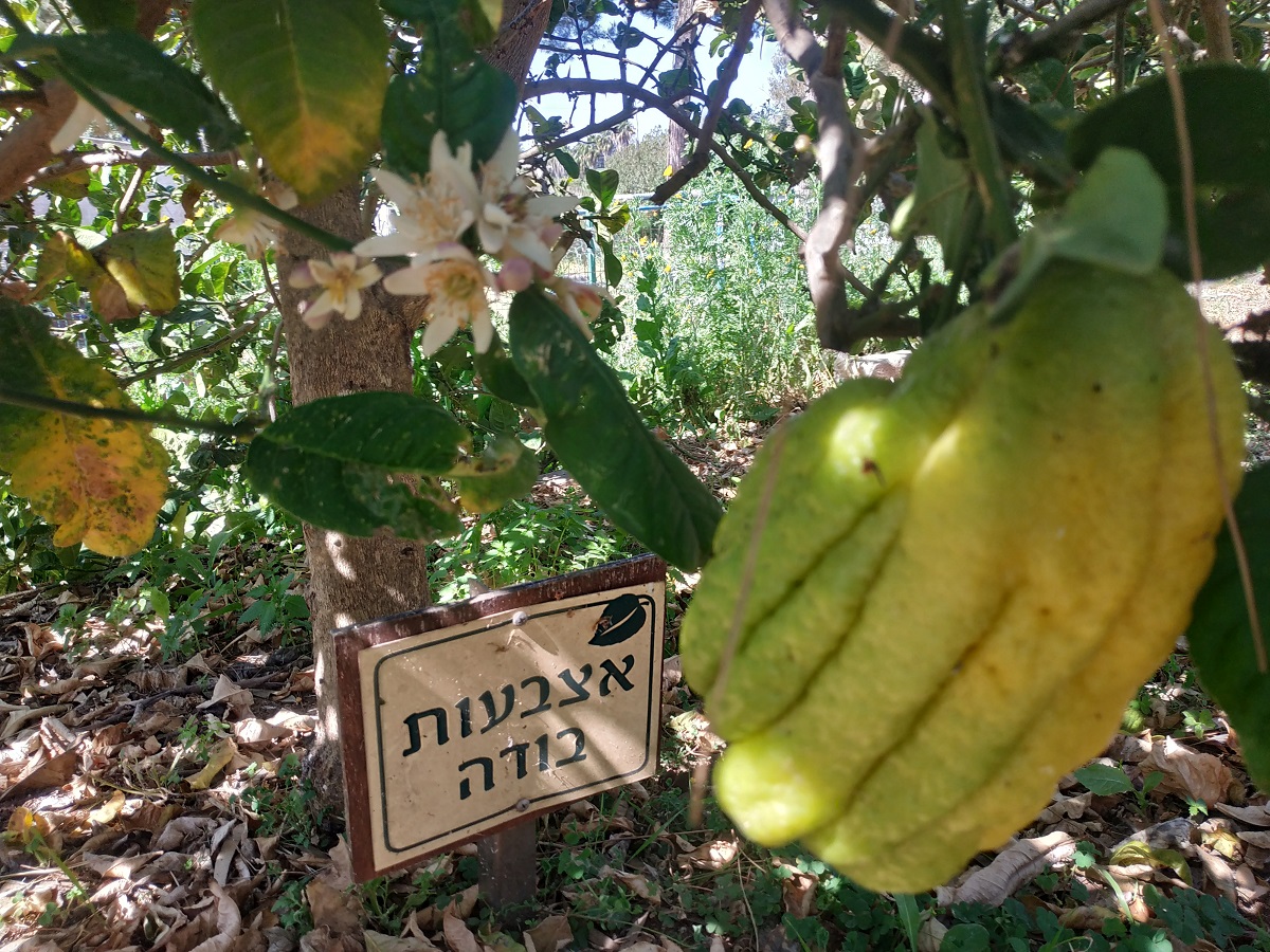 "בין השאר יש כאן עץ בודהה, שהוא סוג של אתרוג עם פרי ציורי ומיוחד (ראו תמונה) שלדברי מאיה, בתי, פרי מסוג זה נמכר בחנויות מזון בניו-יורק בכ-16 דולרים ליחידה. אנשים עוברים ומחמיאים וגם מזה אני רווה נחת. עברתי מעישוב בטורייה לחרמש מכני וכך אני ממלא את בקרי יום השישי, בעבודה לא קלה אך מרתקת ומהנה. כמו-כן קיבלתי מהפרדס עץ אשכולית-אדומה שאני ממליץ לבוא ולקטוף את פירותיו".
