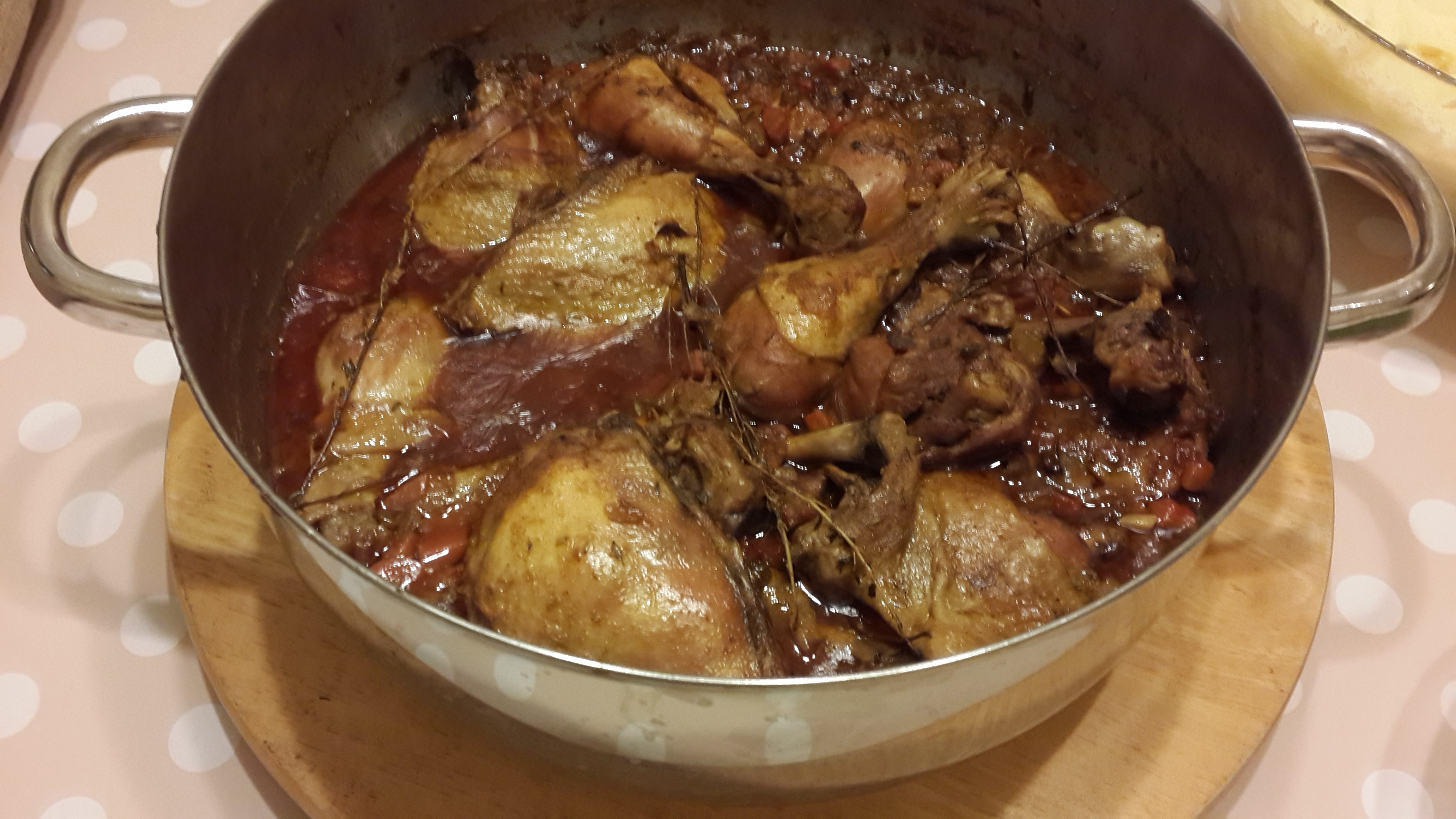 זוהי מנת עוף בבישול איטי בסיר, עשירה בטעמים ואהובה על בני הבית. מתאימה להגשה מעל פירה נימוח או אורז מהביל. (אפשר את אותו מתכון להמיר לקוביות בשר + יין אדום במקום לבן).