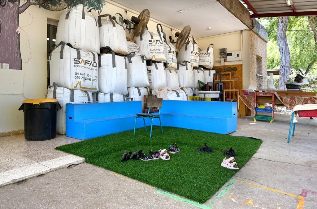הגעתי לצפון מספר פעמים לצילומים, לישובים מפונים וגם לישובים לא מפונים בהם חיים אנשים חיי שגרה לא אנושיים. אחת התמונות שצילמתי היא תמונה של כניסה לגן ילדים בקיבוץ כפר בלום שאינו מפונה. הגעתי לשם כדי לצלם כתבה בה ליווה אייל לוי הכתב, את ליאור שמחה והצוות שלו בסיור בקיבוצי הצפון. סיור קשה וכואב ממנו נשארה לי התמונה הזו שבשבילי שווה 1000 מילים: גן ילדים לא ממוגן שחלונותיו מכוסים שקי חול.