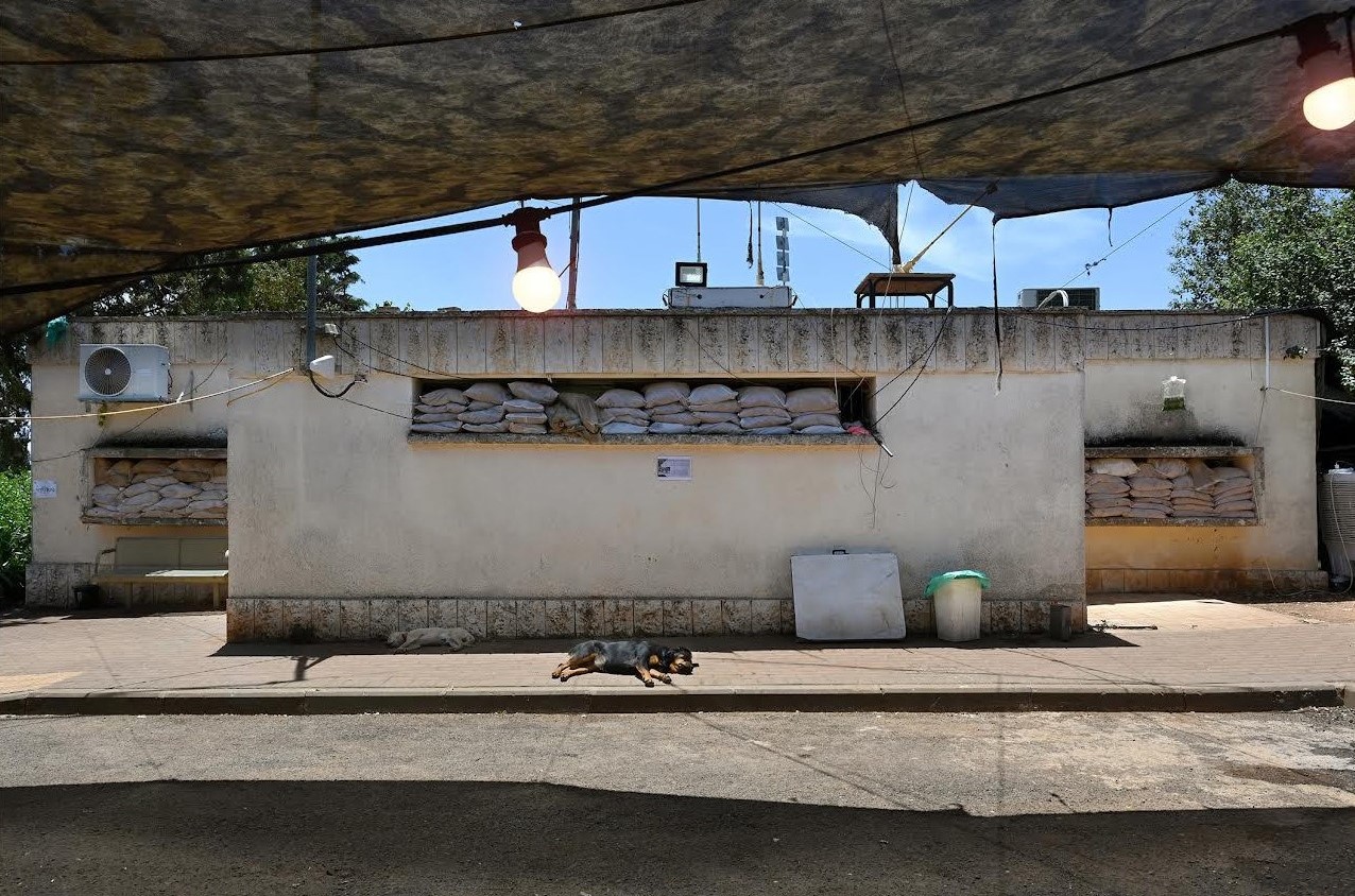 הגעתי לצפון מספר פעמים לצילומים, לישובים מפונים וגם לישובים לא מפונים בהם חיים אנשים חיי שגרה לא אנושיים. אחת התמונות שצילמתי היא תמונה של כניסה לגן ילדים בקיבוץ כפר בלום שאינו מפונה. הגעתי לשם כדי לצלם כתבה בה ליווה אייל לוי הכתב, את ליאור שמחה והצוות שלו בסיור בקיבוצי הצפון. סיור קשה וכואב ממנו נשארה לי התמונה הזו שבשבילי שווה 1000 מילים: גן ילדים לא ממוגן שחלונותיו מכוסים שקי חול.
