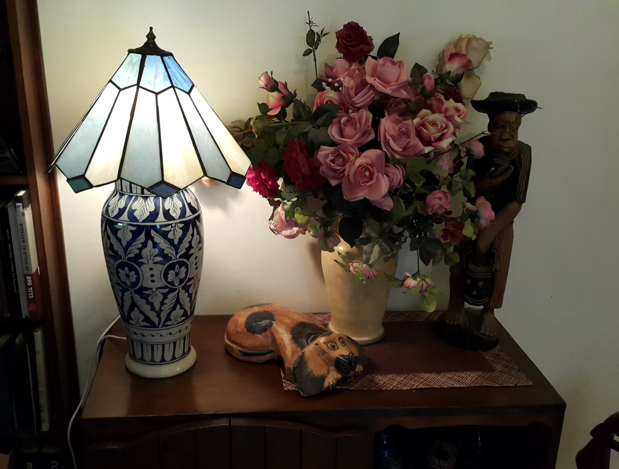 פרחים צבעוניים מלאכותיים מפוזרים בכל הבית (רבקל'ה מסבירה שהיא מאד אוהבת פרחים). הפינות בבית מוארות באור רך הנובע ממנורות הויטראז'.