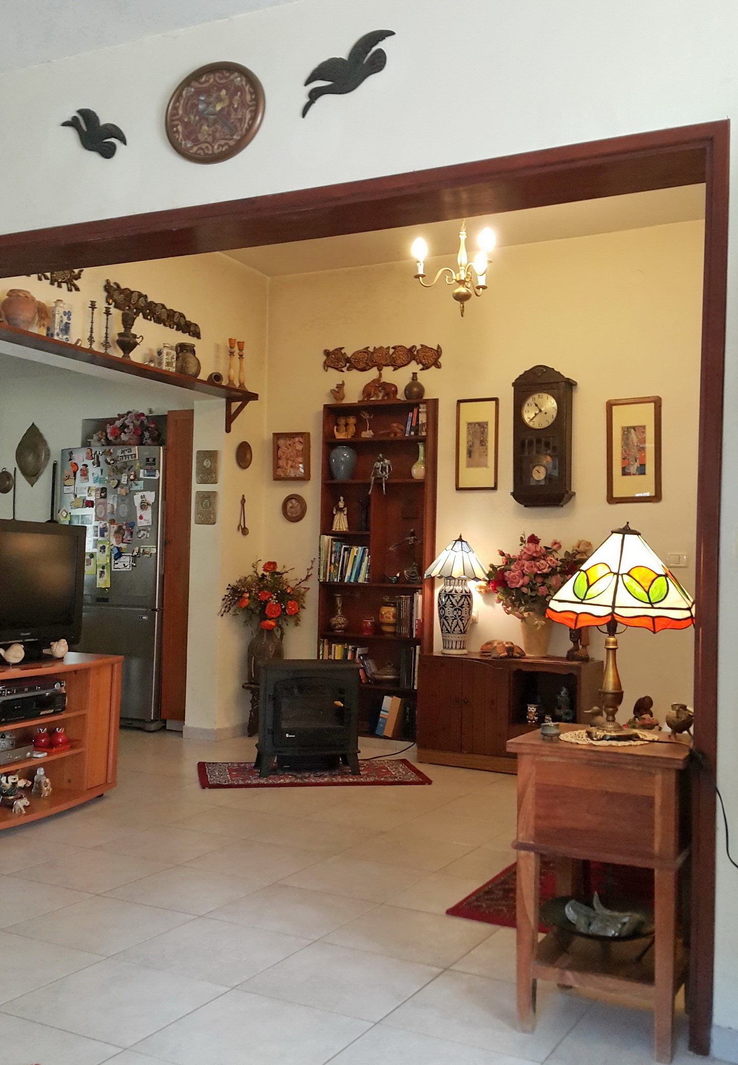 זהו בית של שני אנשים יוצרים מוכשרים – על הקירות תלויים ציורים צבעוניים של אריה, ועבודות קרמיקה ואהילי ויטראז', מסוגננים שיצרה רבקל'ה, מעטרים את רחבי הבית. חלק מהרהיטים הם גם פרי עבודתו של אריה. אין פינה דלה בבית וצריך זמן כדי לקלוט את כל העושר, הכולל פריטי נוי מארצות נכר, כלי נחושת ועוד…