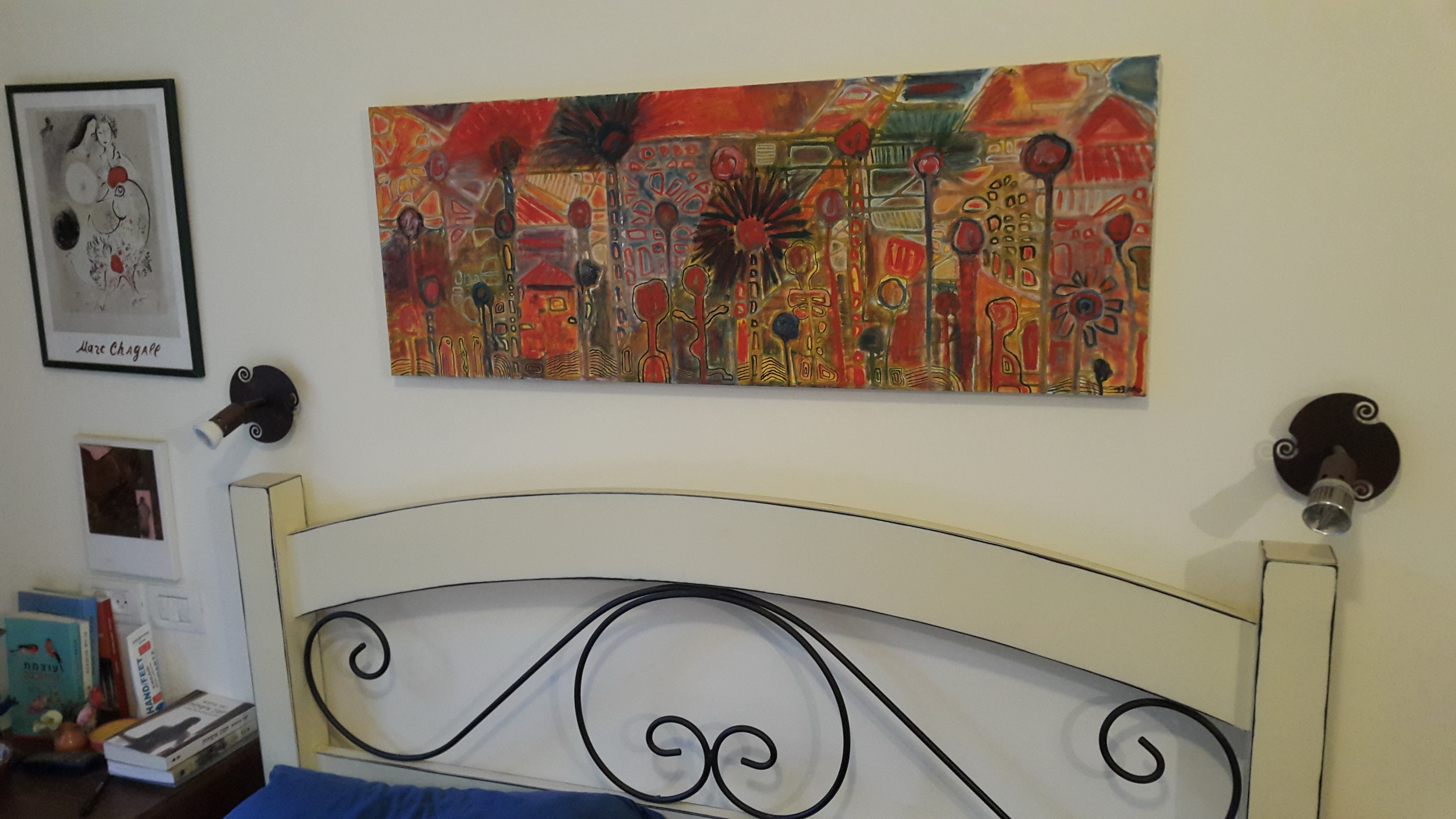מעל המיטה בחדר השנה, ציור של בת כיתתה של ערה – סמדר זעירא,